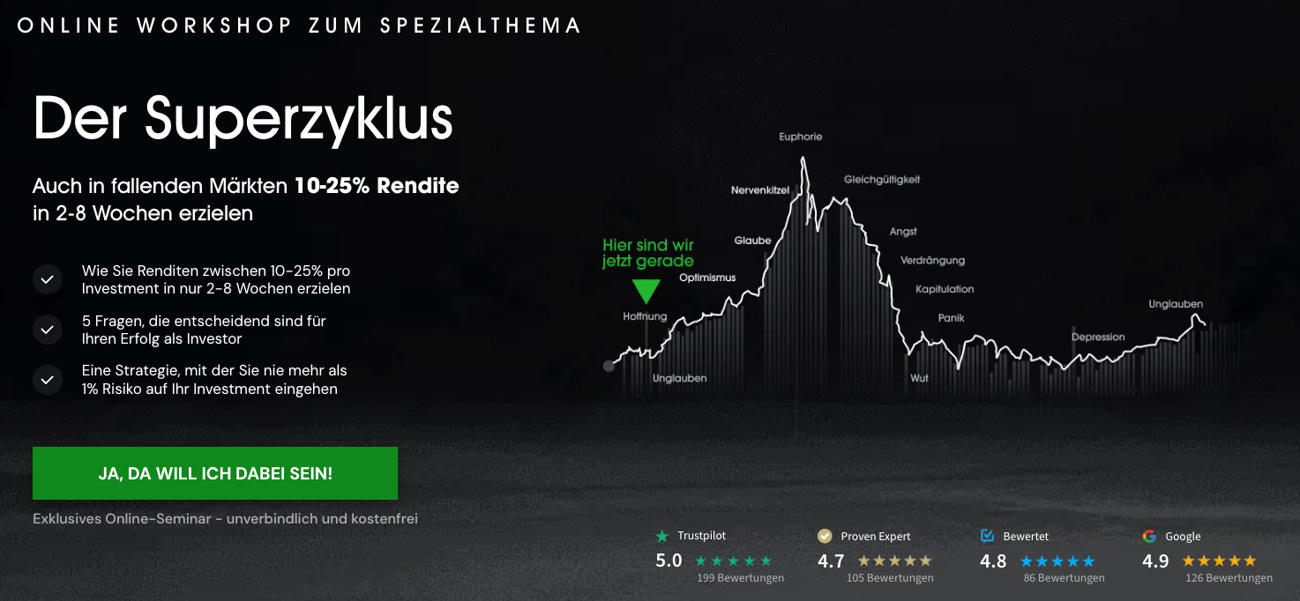 Genau dies führt uns zu unserem kostenlosen Online Workshop „Der Superzyklus“. Dort erfährst du: